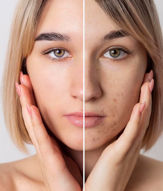 Acne is a common skin condition that occurs when hair follicles become clogged with oil, dead skin cells, and bacteria, leading to breakouts, inflammation, and redness. Even after active acne subsides, it can leave behind scars, uneven skin texture, and discoloration.